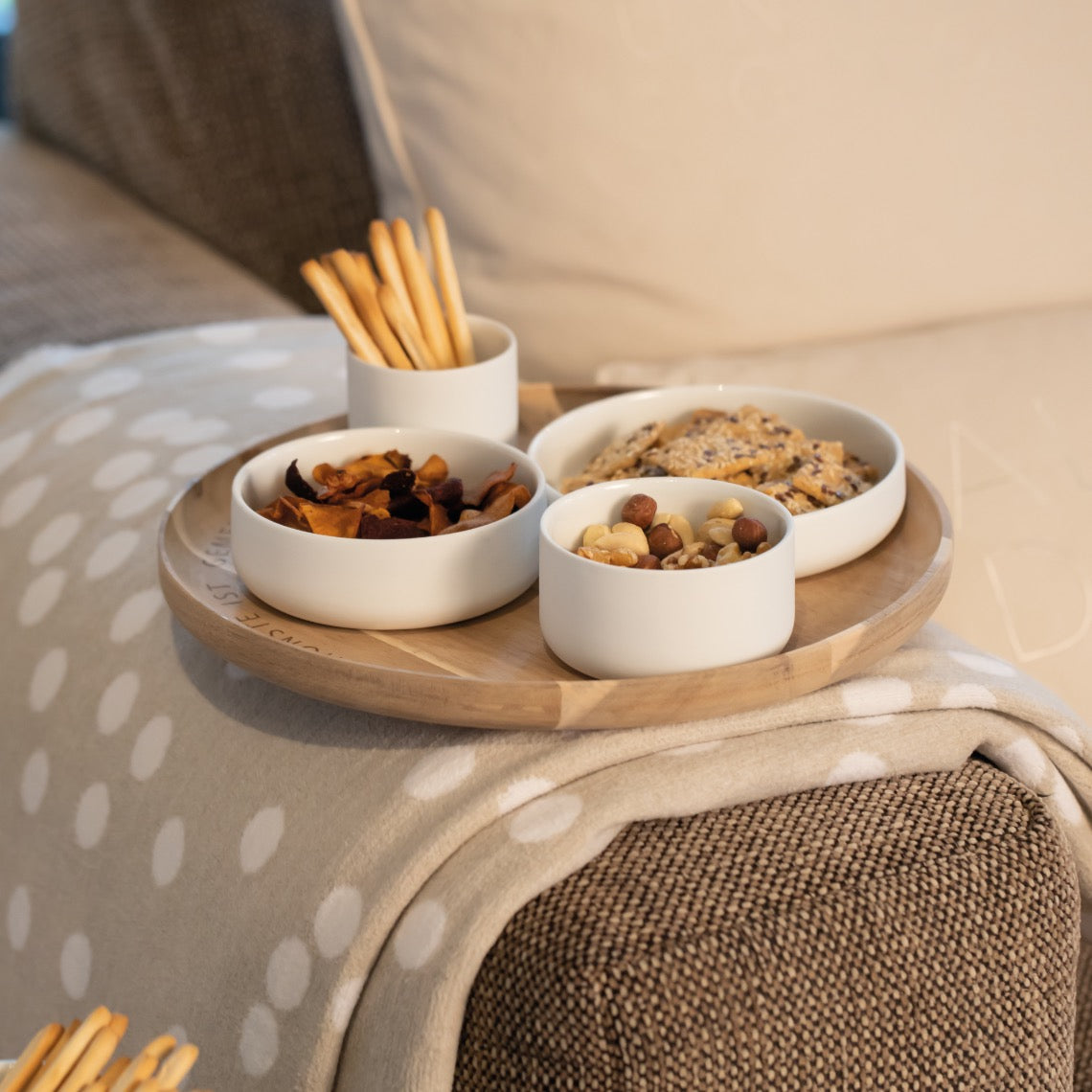 Das Tablett aus Akazie erinnert daran, was wirklich wichtig ist.