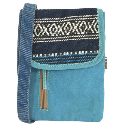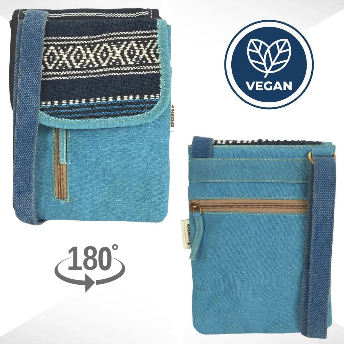 Sunsa Damen Handy Tasche, kleine Umhängetasche aus Canvas & gewebte Baumwolle. Vegane Crossover bag mit Streifen türkis